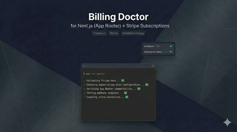Billing Doctor for Next.js — Stripe Billing Template + Webhook Debug